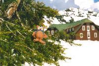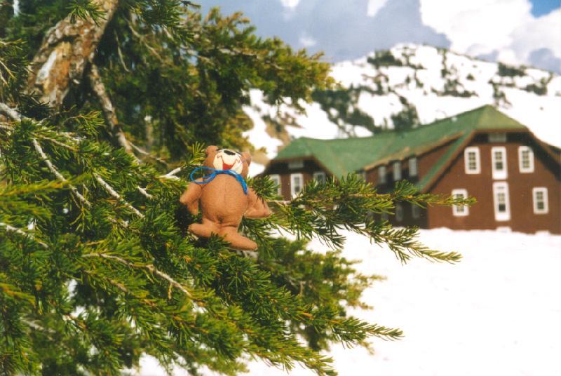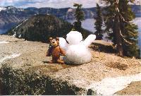 Even in late summer, there is still snow. SugarBear builds a "snow bear".